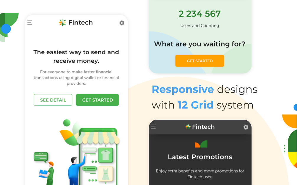Landing page for Finance, Technology, SaaS, Software or Application. This template has fully supported with dark mode and light mode. Today financial technology growth has become a major needs for modern people, so is a good time to start you financial platform business.