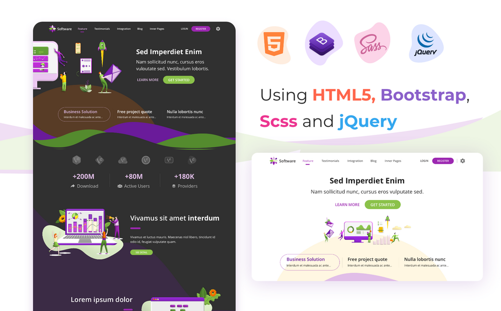 Project for SaaS, Software or Application landing page. This template has fully supported with dark mode and light mode. And also we provides you clean modern design, well organized layers, components and color palette in high quality.